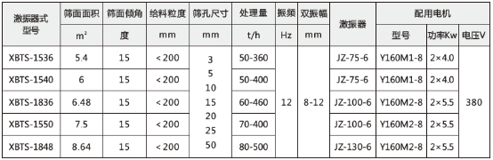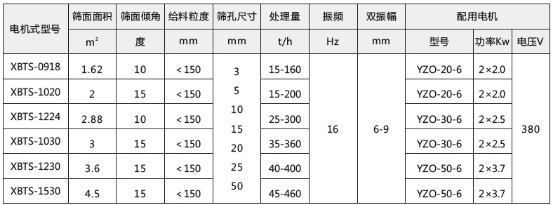 XBTS系列彈臂振動(dòng)篩面傾斜安裝,角度在20°-35°之間,與其它同類型產(chǎn)品相比具有下列特點(diǎn):
